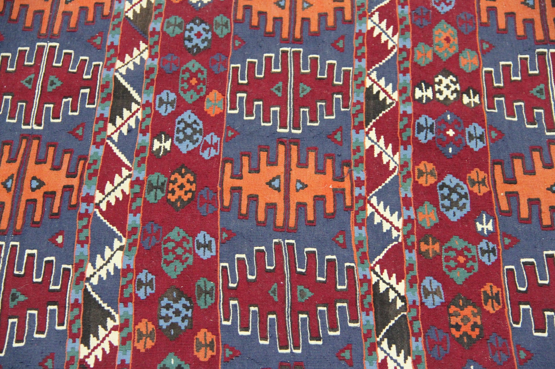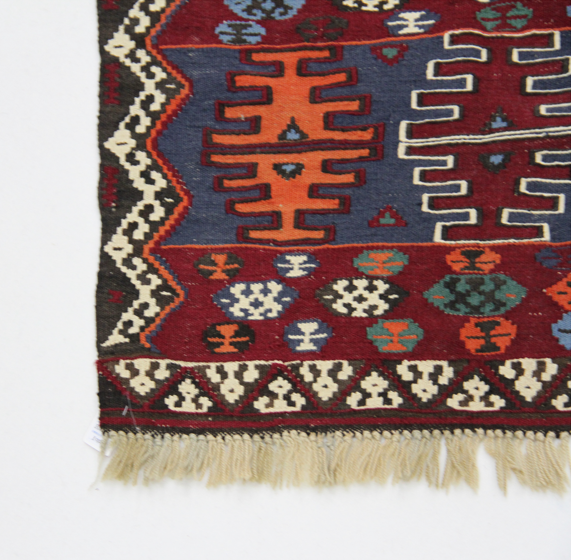 This kilim is made from high quality wool, which is durable and soft at the same time. Wool's natural properties make it warm and comfortable underfoot. Wool is also durable and will maintain its beauty over time.
