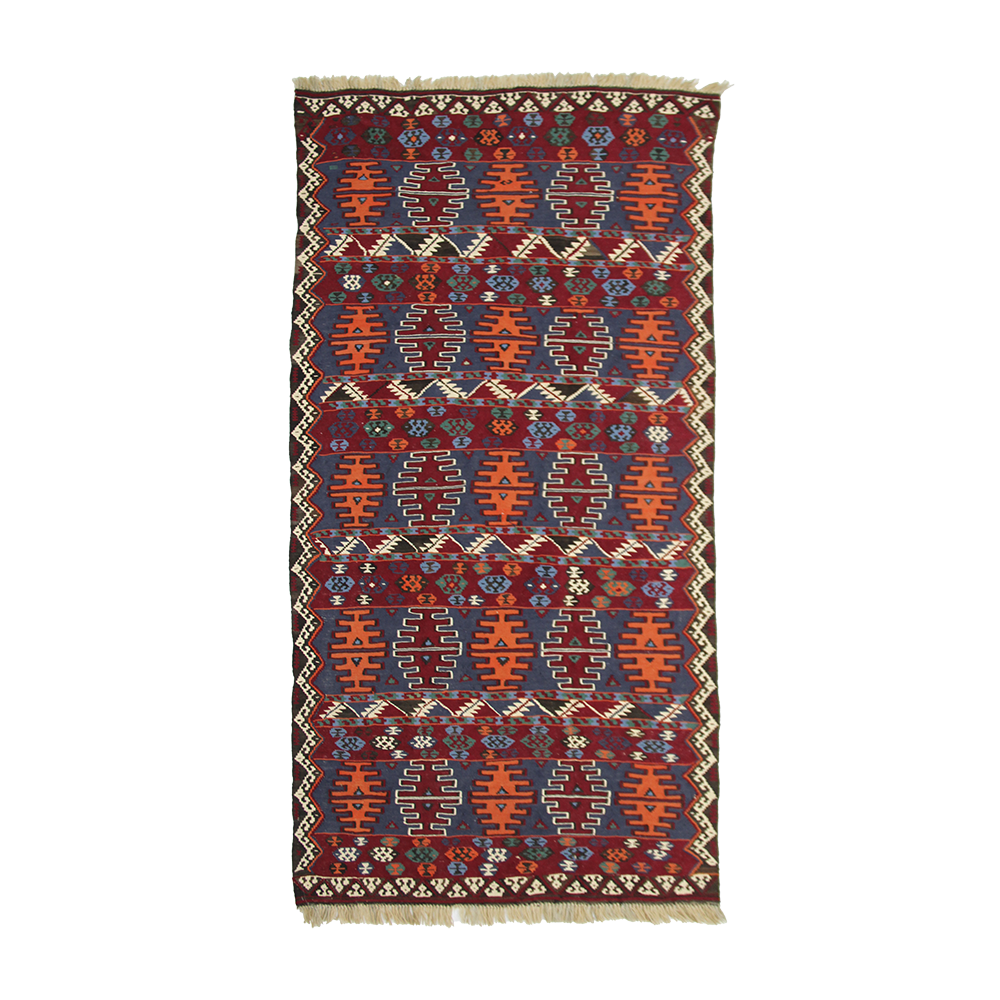 The kilim with product number K0723 is hand-woven using traditional Turkish techniques. Kilims are characterized by their geometric patterns and vibrant colors, bringing vibrancy and elegance to any space. Turkish kilims are loved around the world for their artistry and practicality.