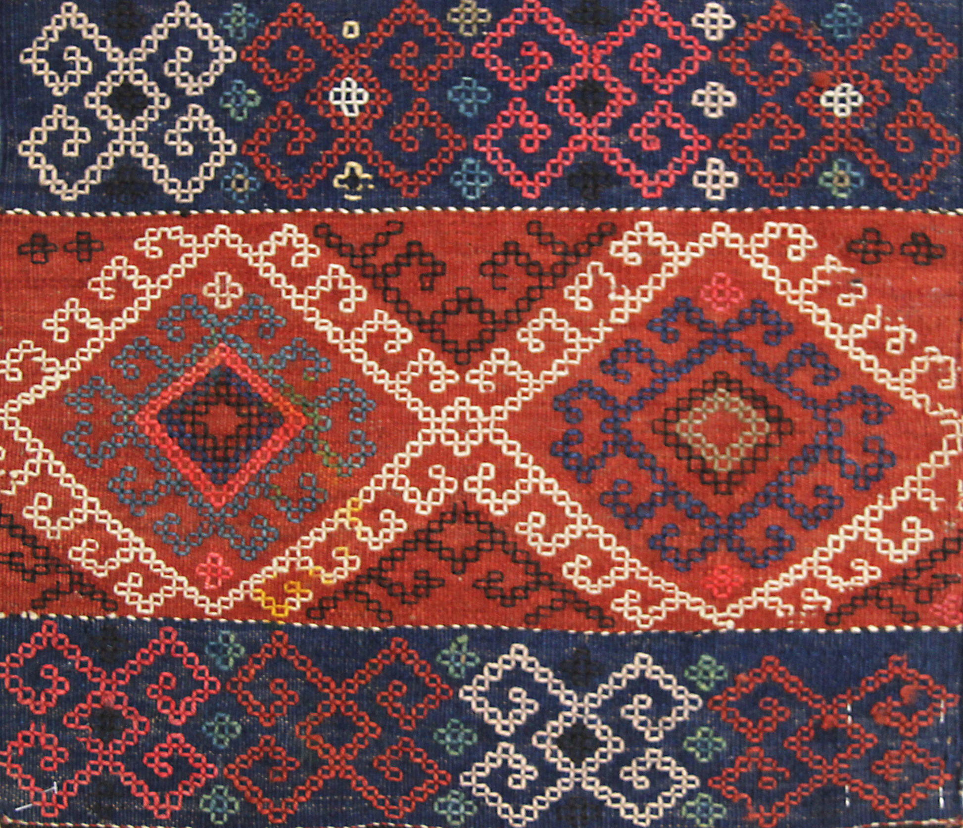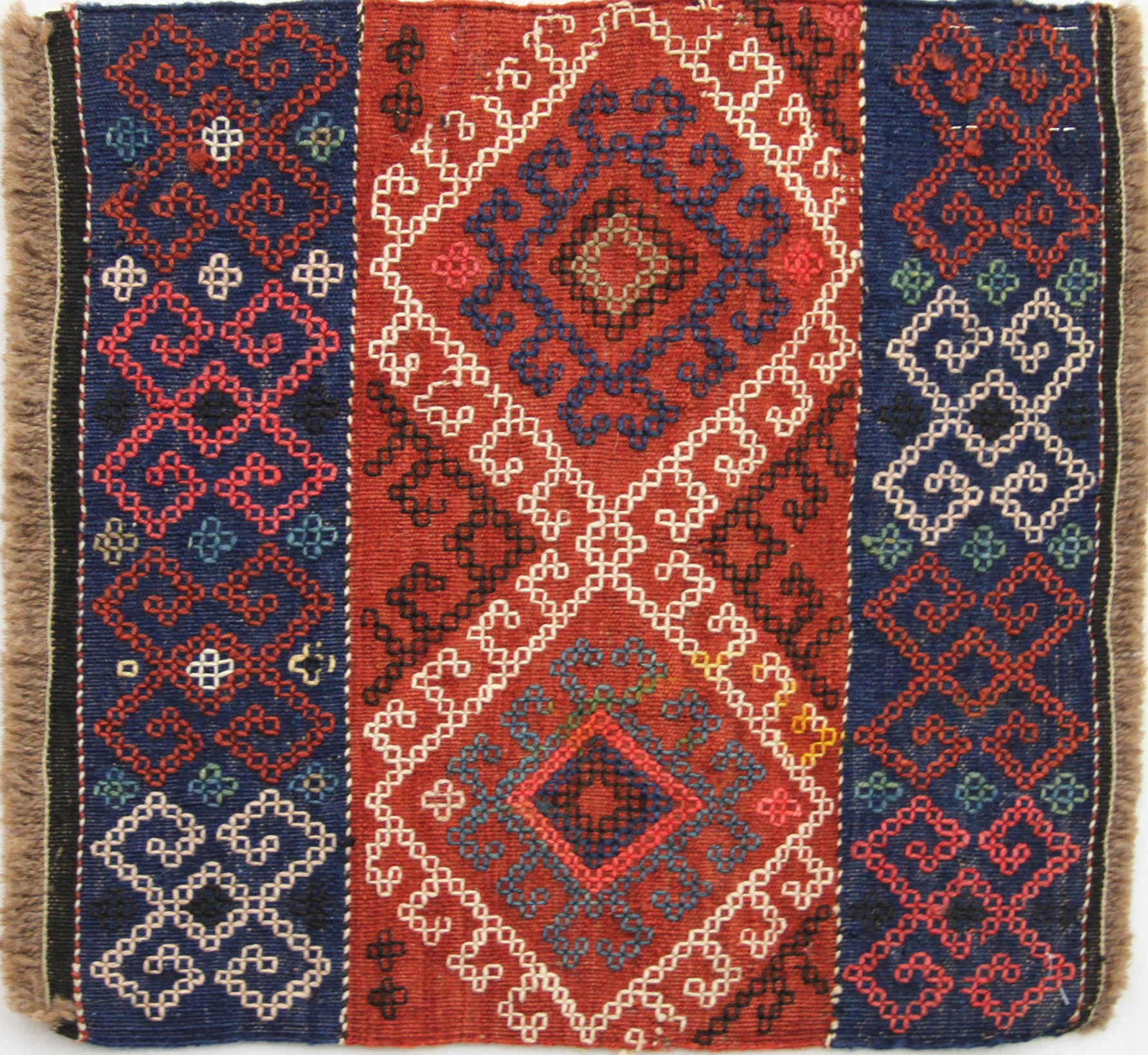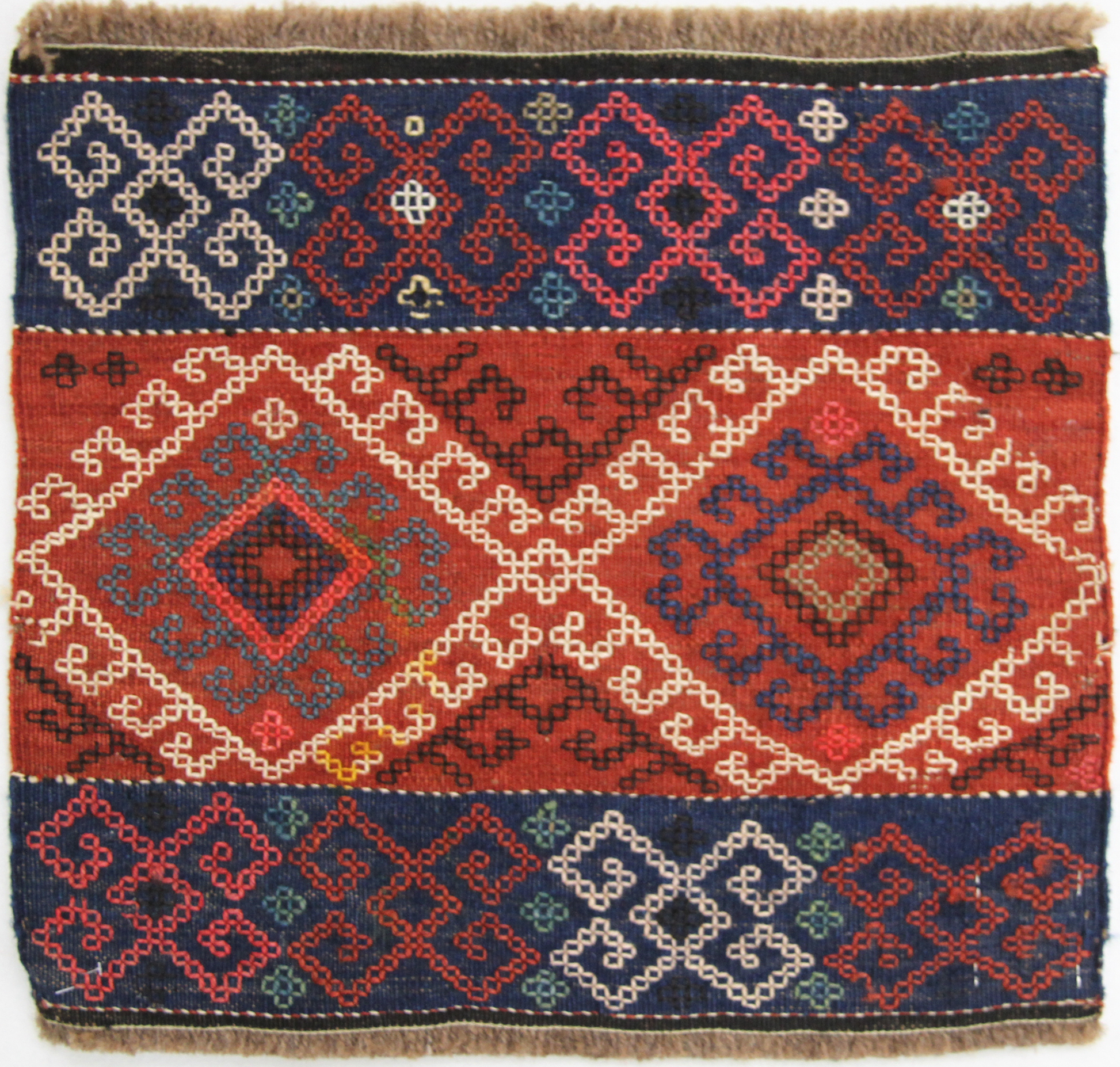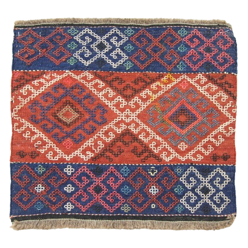The Kilim carpet, item number K4306, is a compact size of 46x42cm, and its design will match any interior. This size is also perfect for placing under a desk or small table, or as an entrance mat.