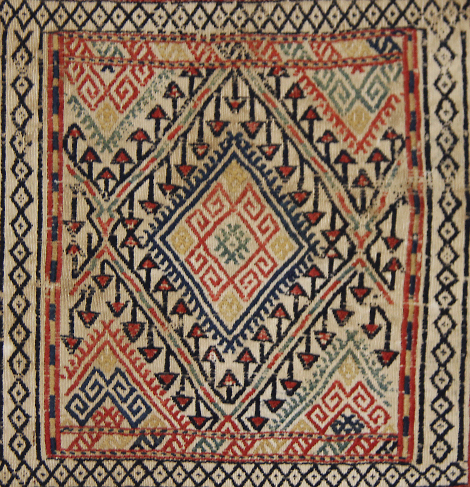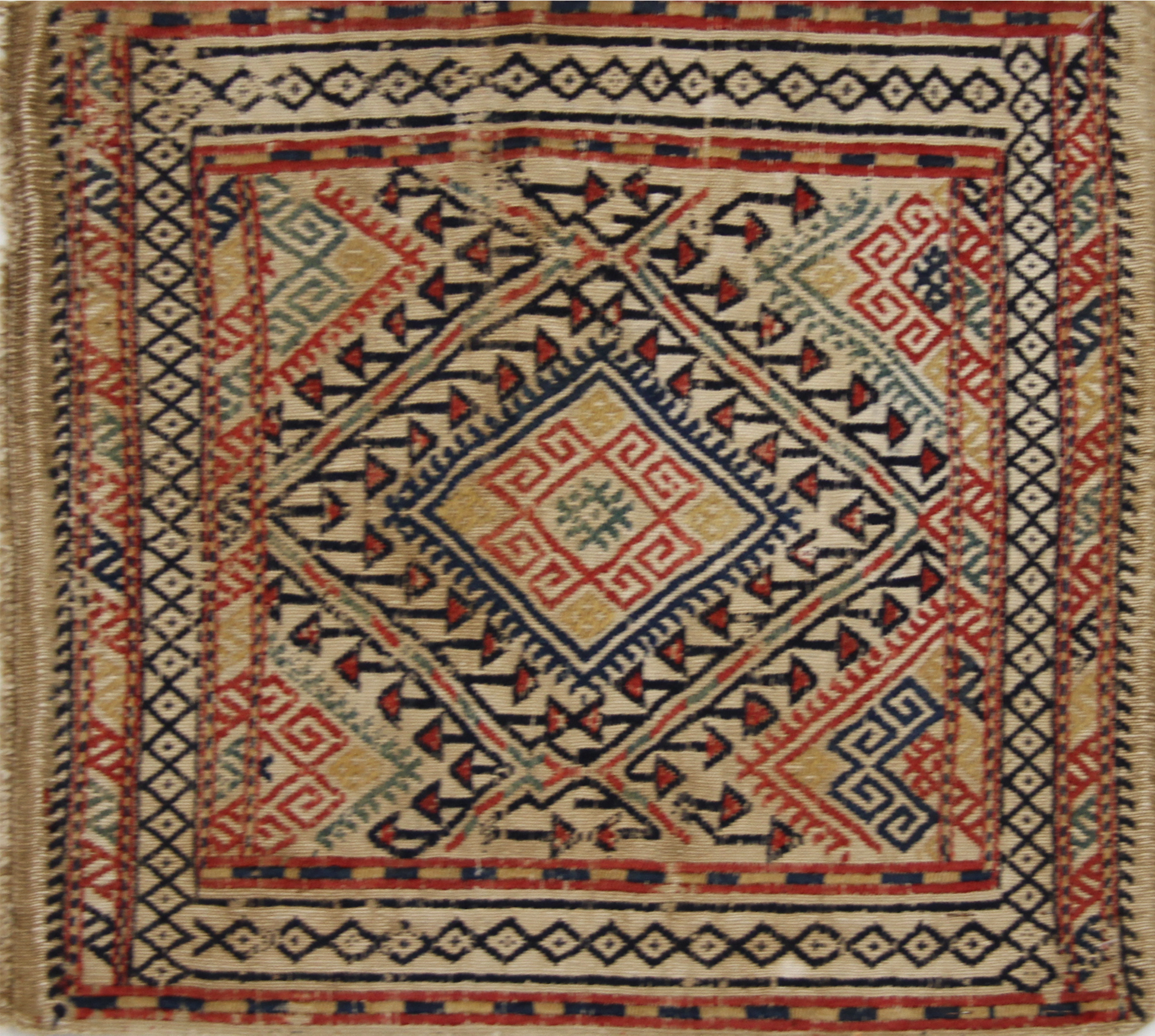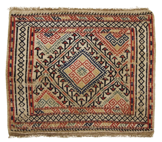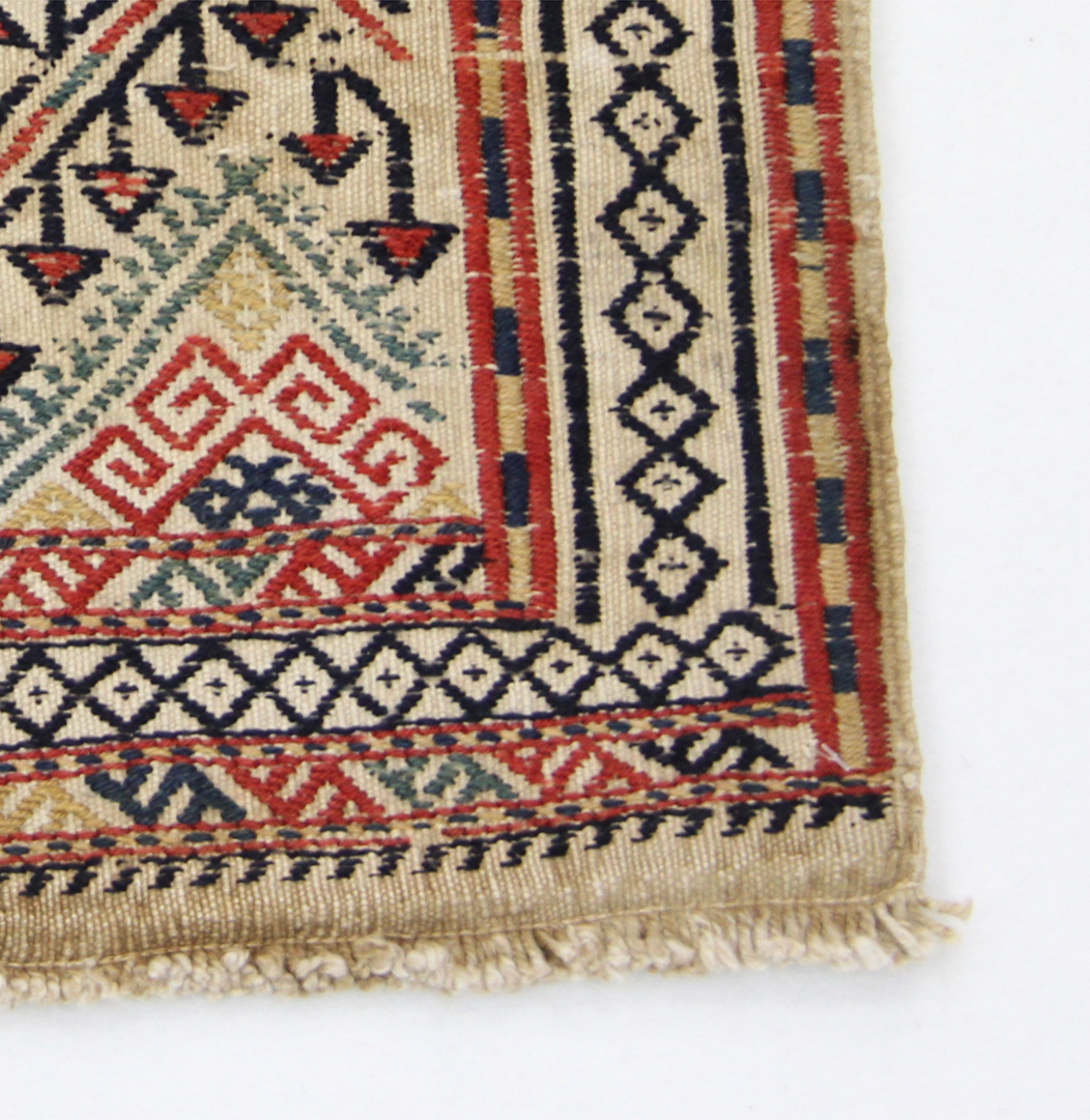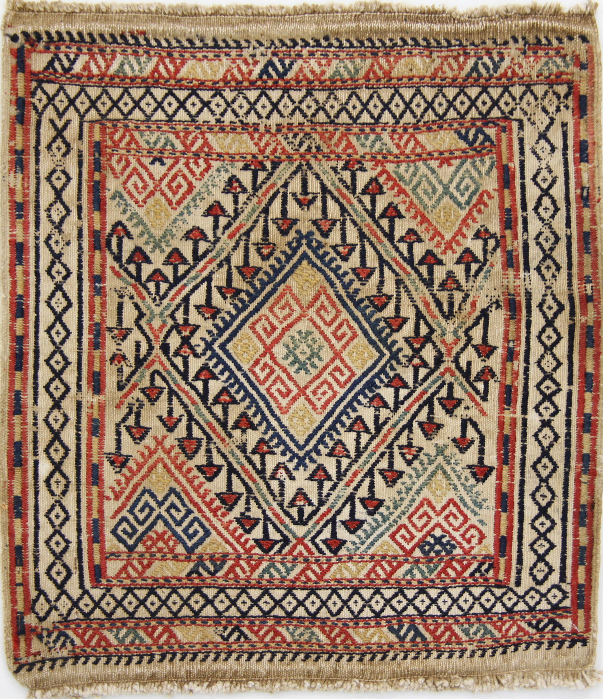 The Kilim carpet, item number K4308, is compact at 46x43cm and will blend in with any interior. This size makes it perfect for placing under a desk or small table, or as a doormat.