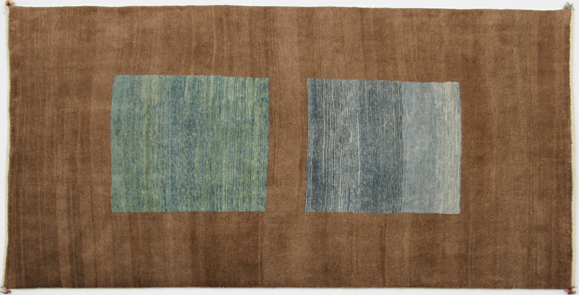 This Gabbeh carpet features a design inspired by nature. The abstract patterns and rich colors blend beautifully to add warmth and character to any room. The wool is dyed using traditional methods, which will develop a unique character over time.