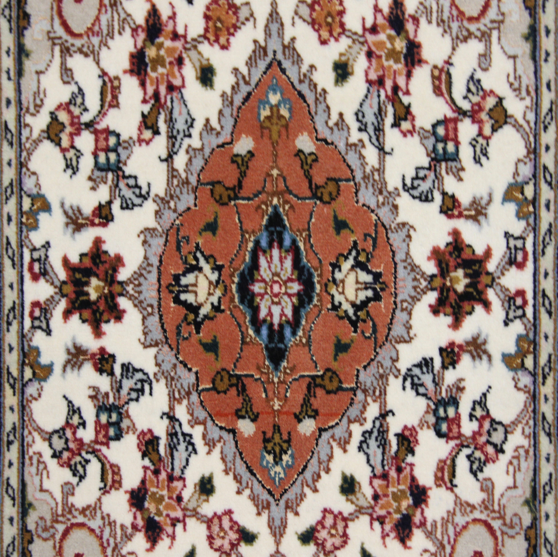 This Persian carpet (item no. 4228) is a luxury rug from Tabriz that features a medallion design. Its unique patterns and colors epitomize the traditional beauty of Persian carpets.