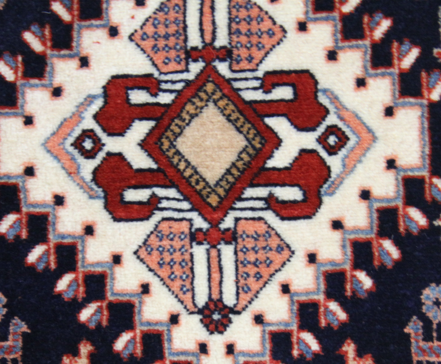 This Persian carpet from Kashkuri is an attractive piece of traditional craftsmanship and design. It is small in size but has a striking design.