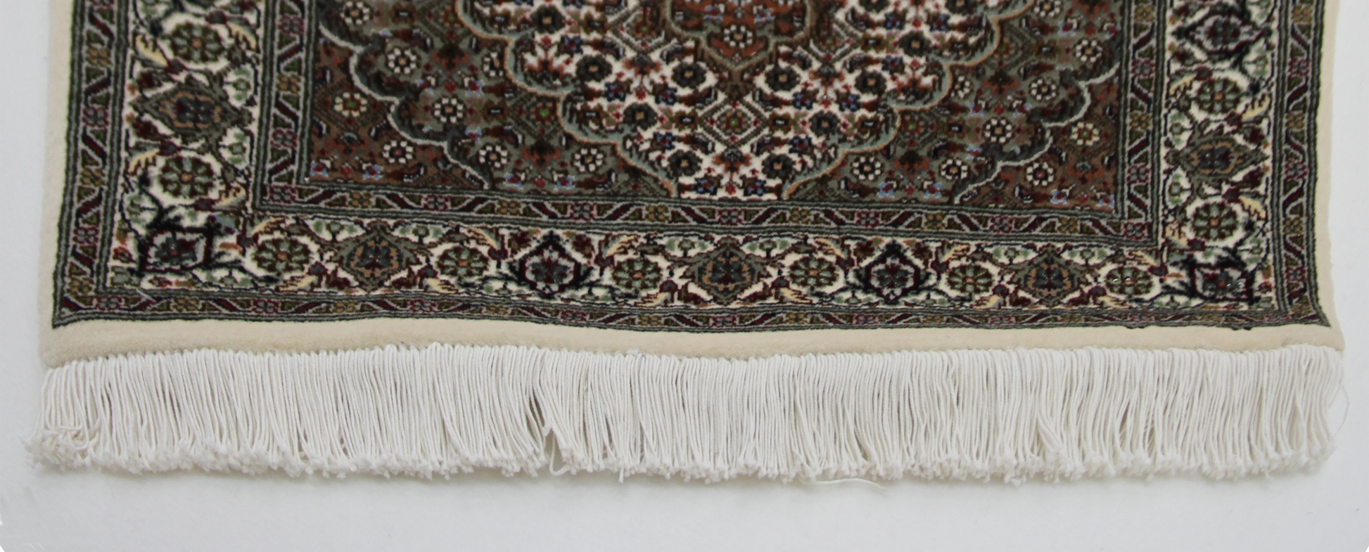 This carpet design features the traditional Mahi motif, which is an intricately repeated pattern that is visually very appealing and elegant. This design brings sophistication and elegance to the room.