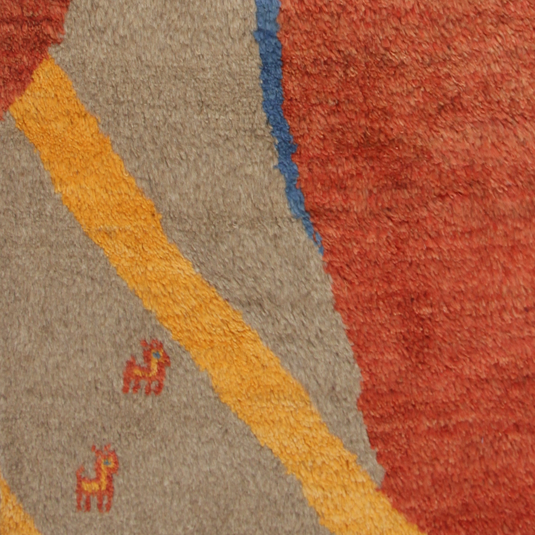 This Gabbeh is made of high-quality wool and is 25mm to 30mm thick, providing a firm texture. Aiming for the original rustic quality of Gabbeh, this item has a natural texture and warmth. The colors dyed with natural dyes will deepen with long-term use, allowing you to enjoy the changes over time.