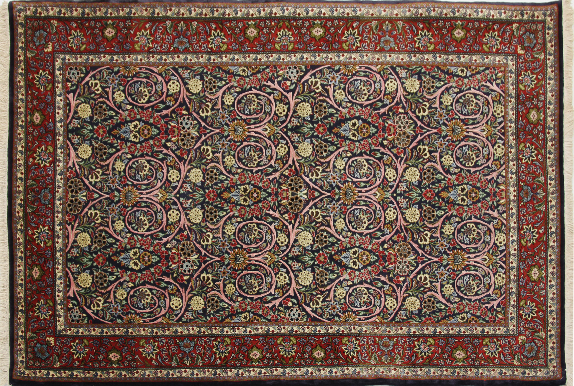 56万ノットの高密度織りで、繊細な模様と耐久性が自慢です。素材には上質なウールが使用されており、その手触りと暖かさは他にはない魅力です。このSAROUGH産のペルシャ絨毯は、鮮やかなレッドとネイビーの色合いが特徴です。伝統的なペルシャのデザインで、お部屋に豪華さと洗練をもたらします。