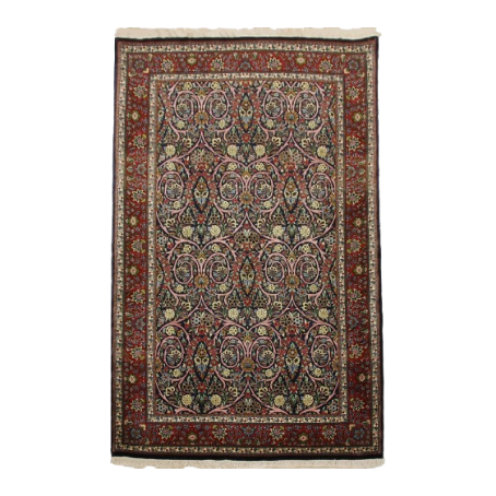 このペルシャ絨毯は、伝統的なデザインとモダンなエレガンスを兼ね備えた一品です。どんなインテリアにも合うデザインで、お部屋のアクセントとして最適です。