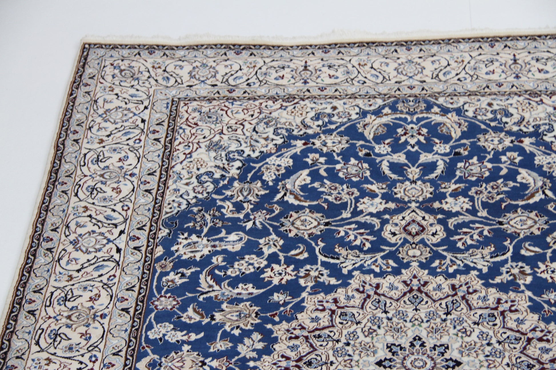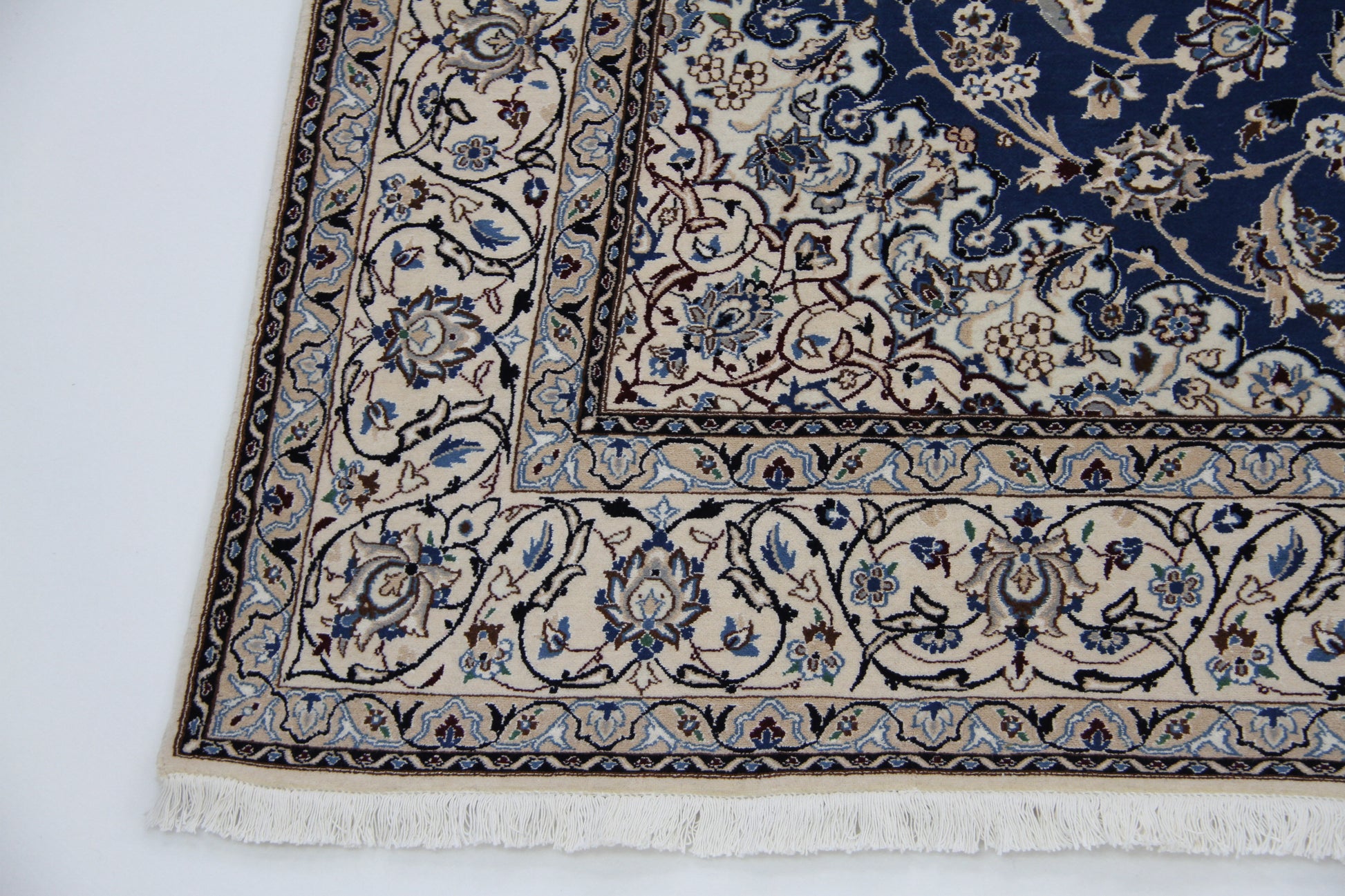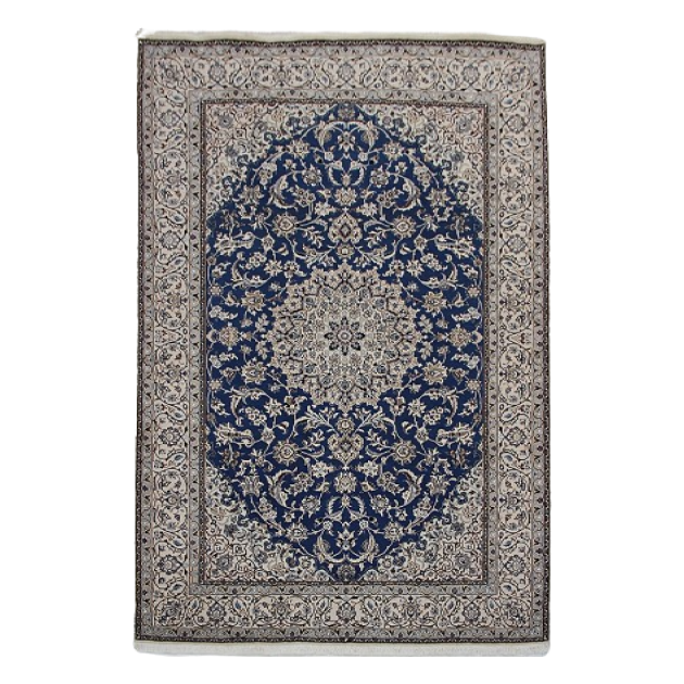 このペルシア絨毯は、ナインの熟練した職人によって手織りされています。手織りならではの温かみと繊細な織り目が特徴で、どの角度から見てもその美しさを楽しむことができます。