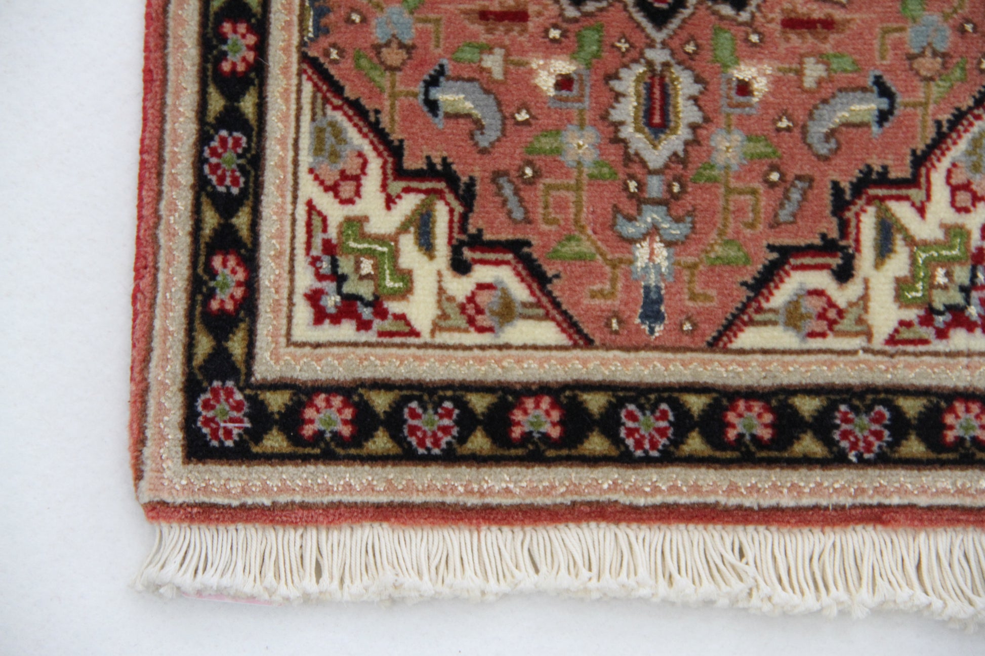 タブリーズ地方の職人が代々受け継いできた伝統的な手織り技術によって作られており、伝統的なデザインと高品質な素材が現代のインテリアにも自然に溶け込むことでしょう。このタブリーズ産ペルシア絨毯は、その小さなサイズでありながらも、デザインと品質で空間を華やかに彩る逸品です。伝統的な技術と美しさを、ぜひお楽しみください。