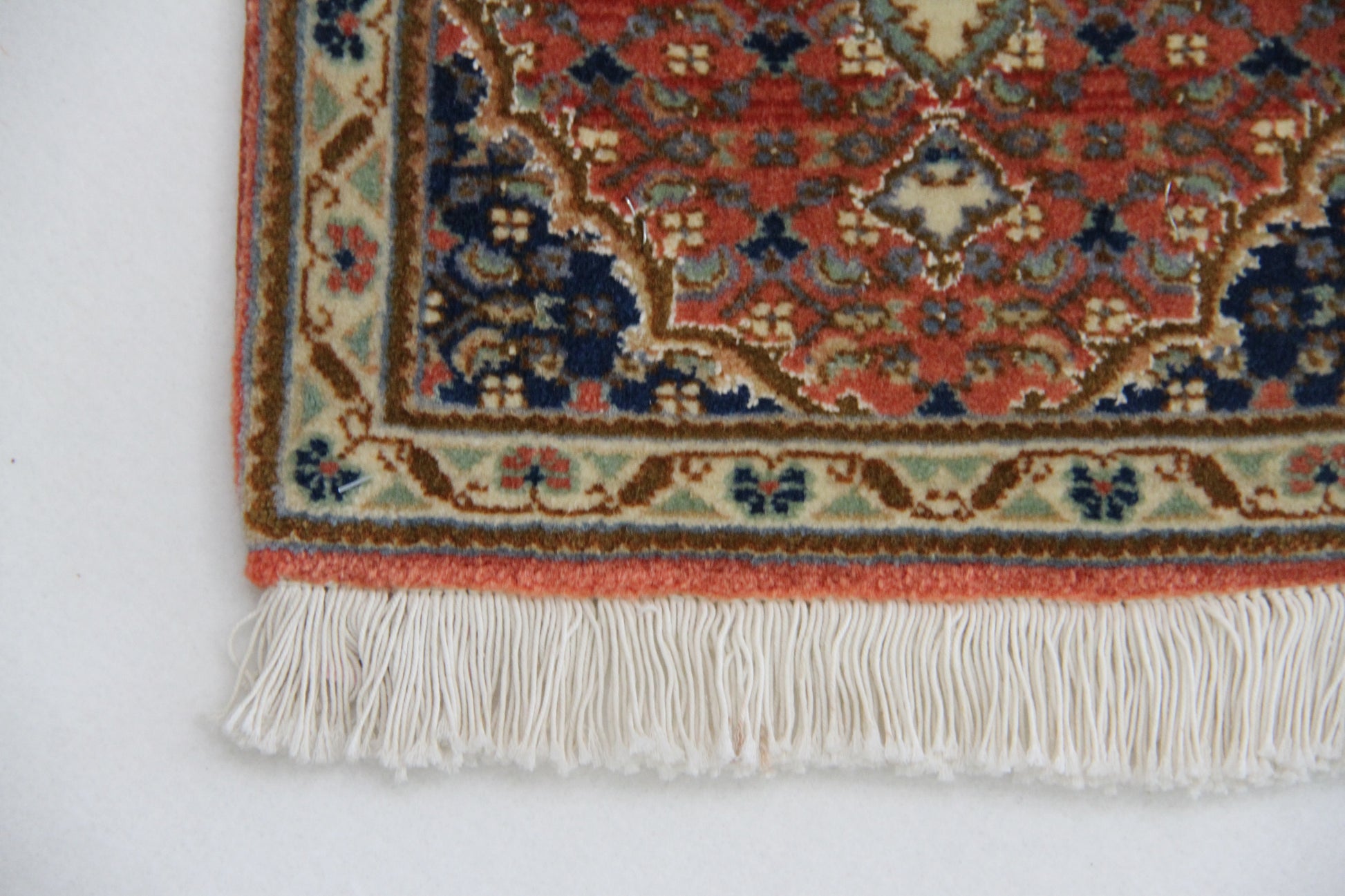このタブリーズ産ペルシア絨毯は、小さなサイズながらもそのデザインと品質で空間を彩る一品です。伝統とモダンが融合した美しさを、ぜひお楽しみください。